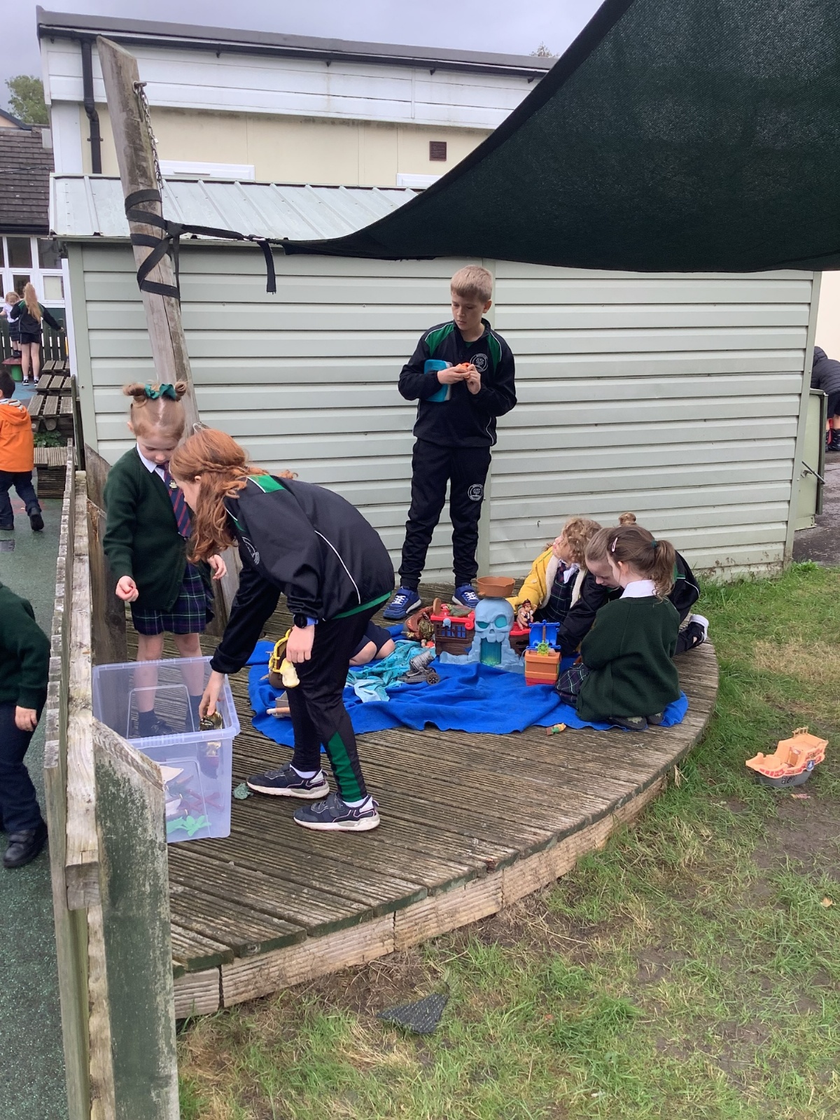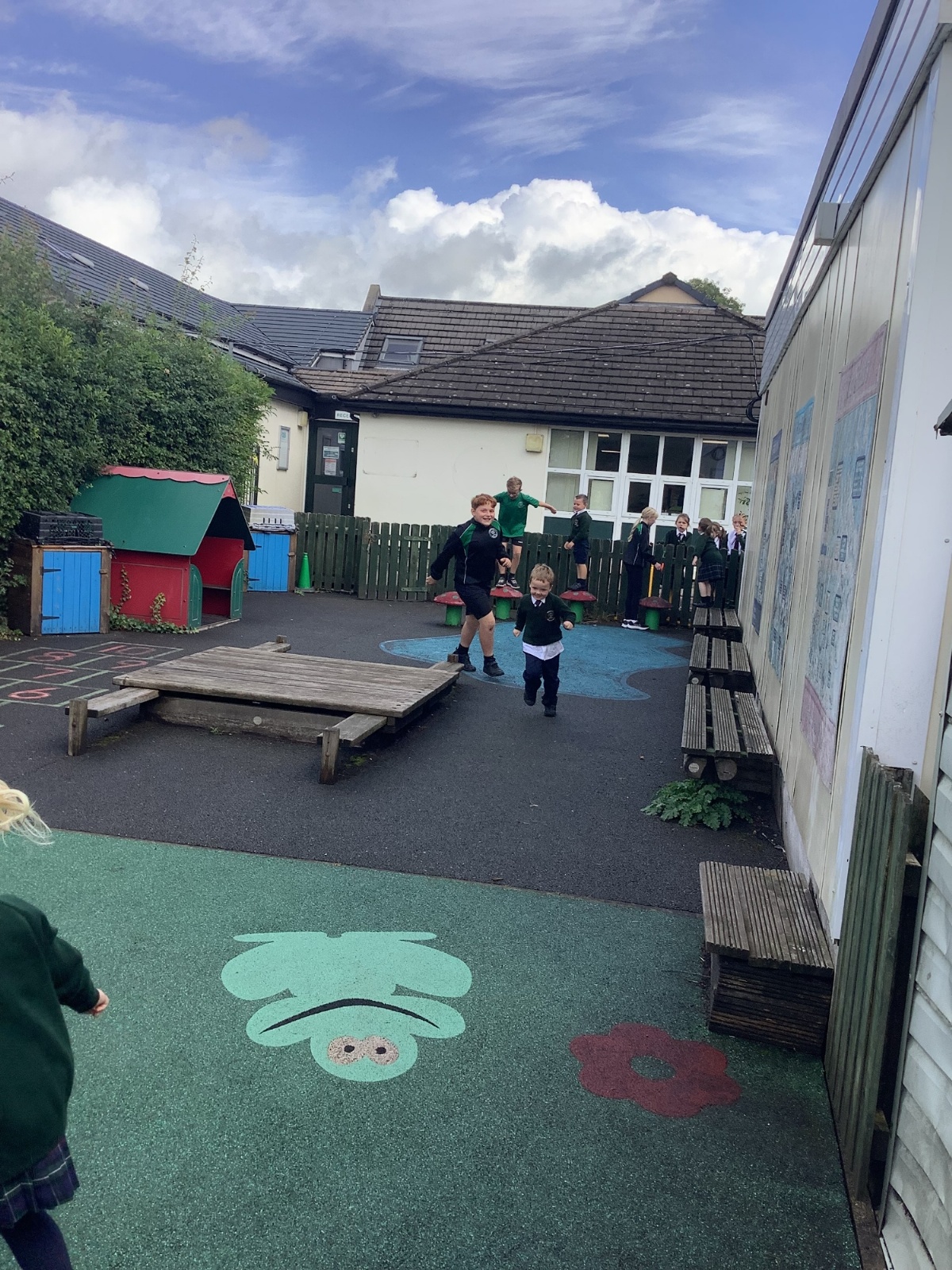 Every Thursday morning, Year 6 get to share their morning playtime with Reception. We play either in their outdoor area or on the school yard.