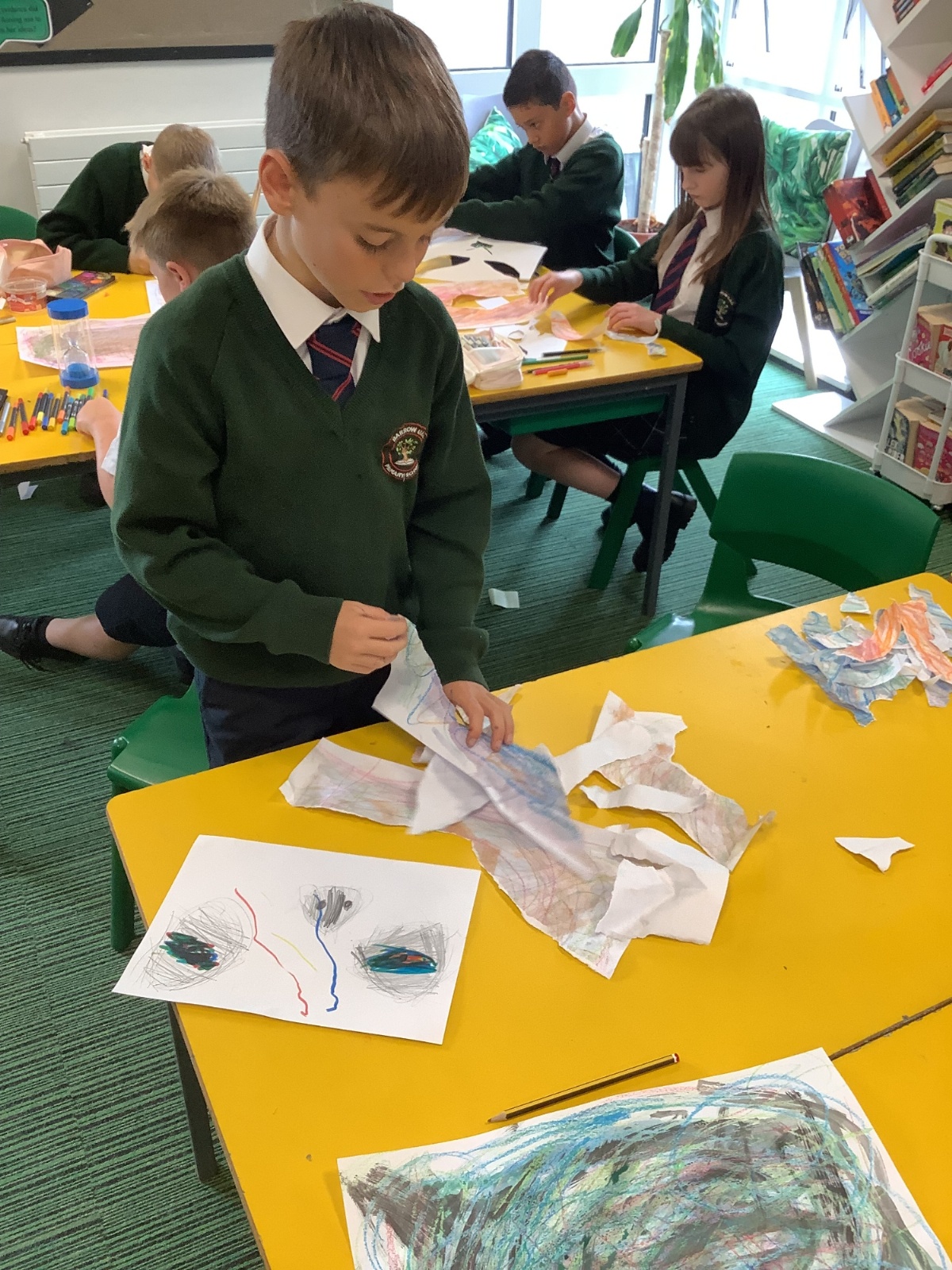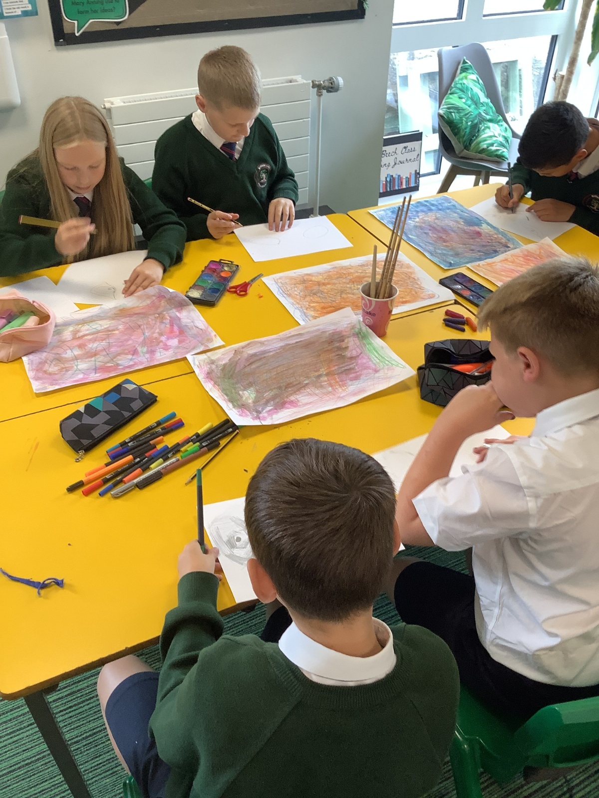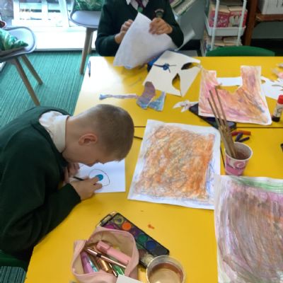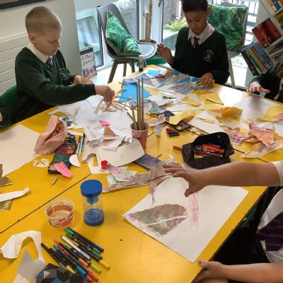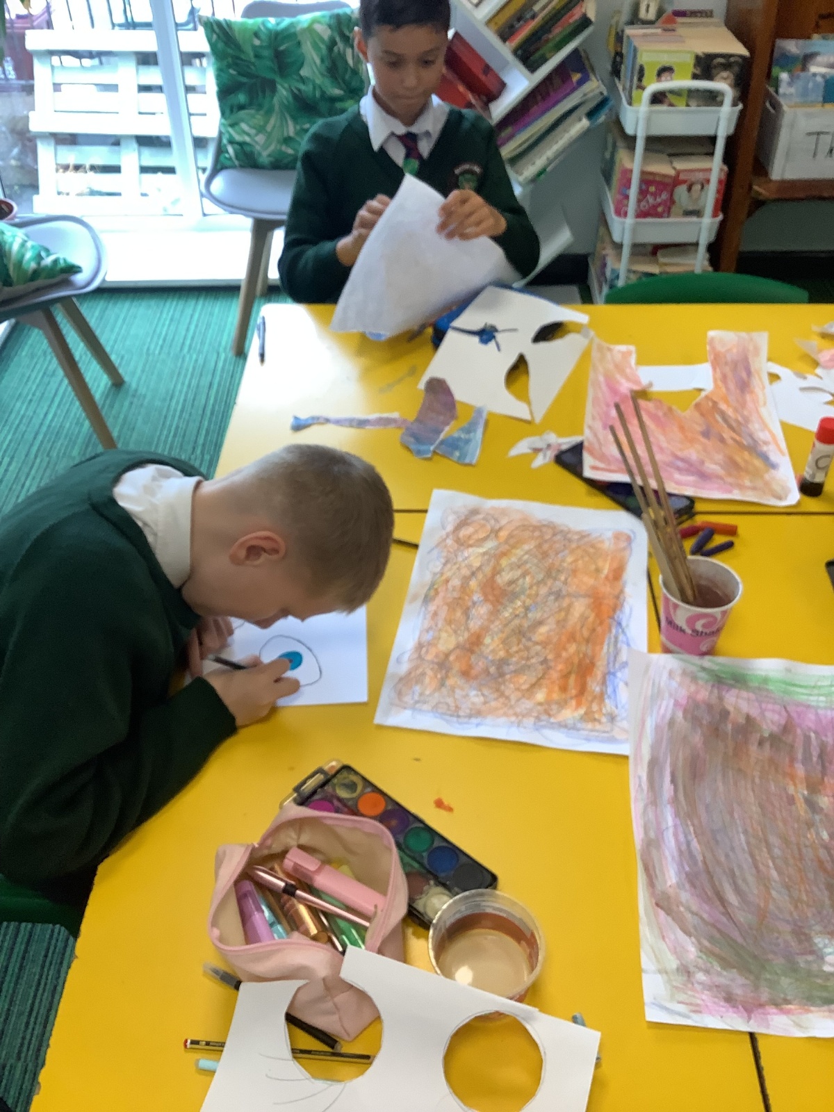 Year 6 loved getting stuck into some Art on the first day back. We created layered backgrounds which we then cut up and collaged onto paper. On top of this we created our own nose and eyes to represent an animal that we felt represented us and our loves.