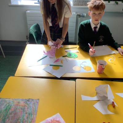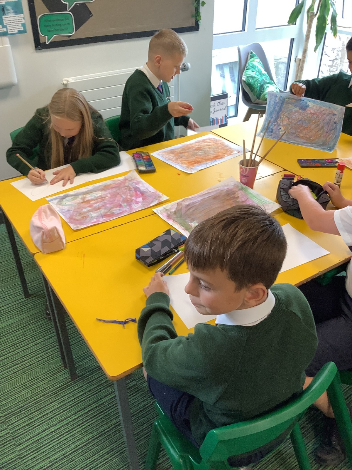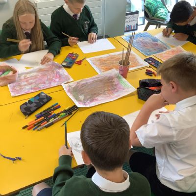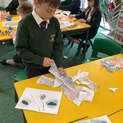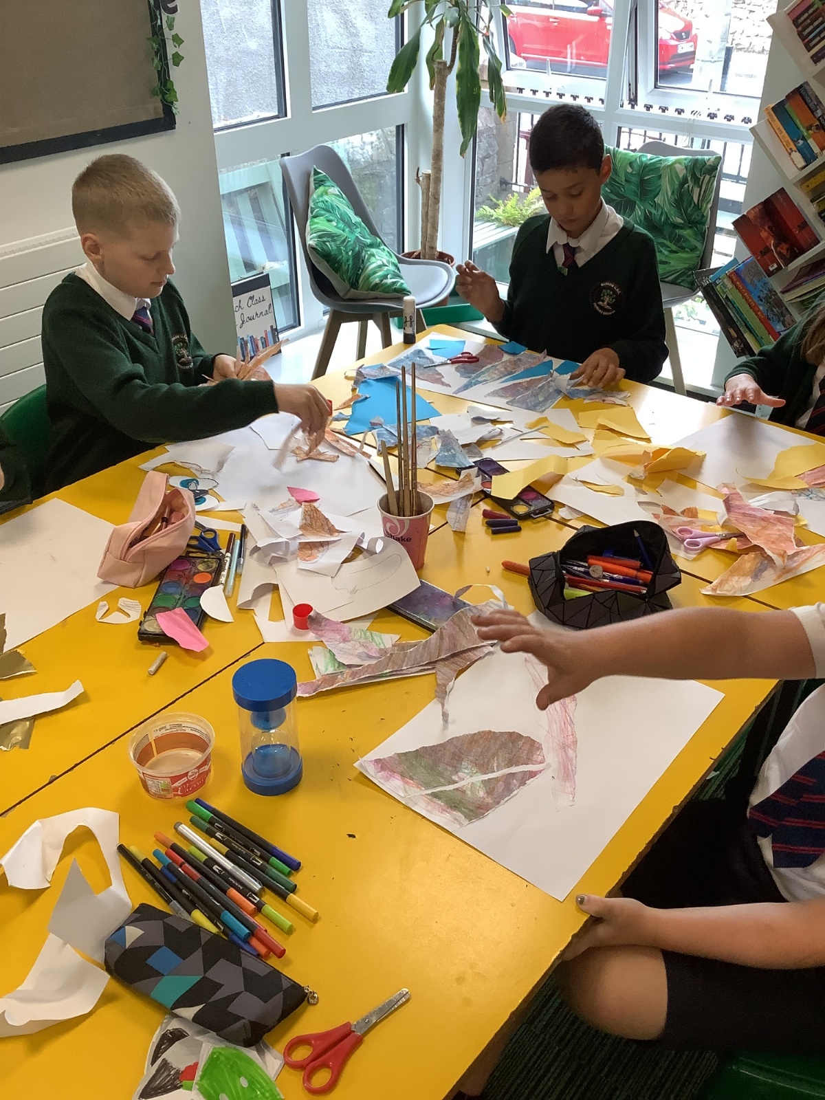 Year 6 loved getting stuck into some Art on the first day back. We created layered backgrounds which we then cut up and collaged onto paper. On top of this we created our own nose and eyes to represent an animal that we felt represented us and our loves.