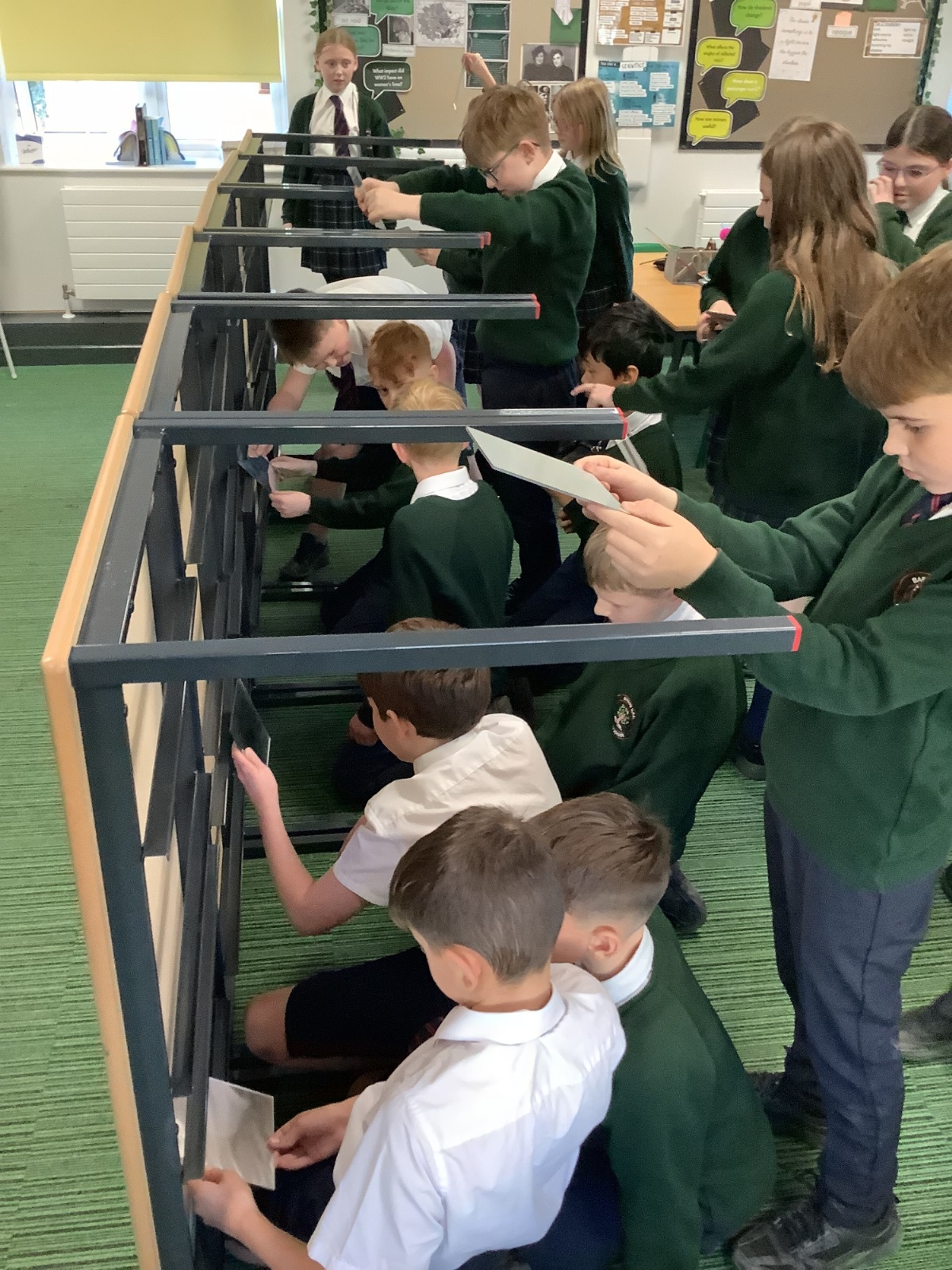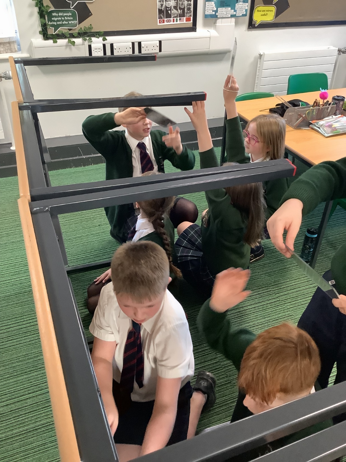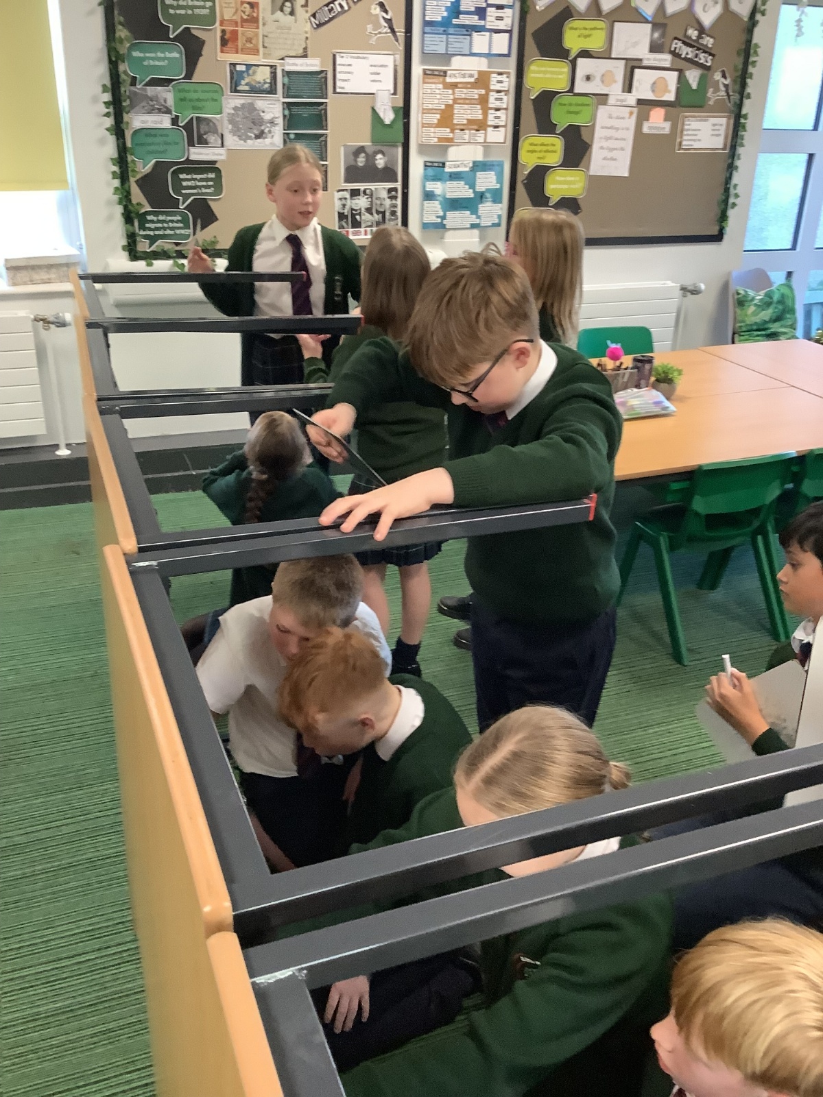 Year 6 learnt all about periscopes as part of their Science topic. They created their own WW1 trench and we used a pair of mirrors to decode secret messages.