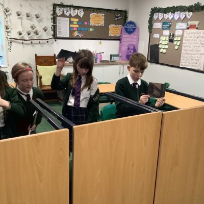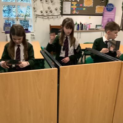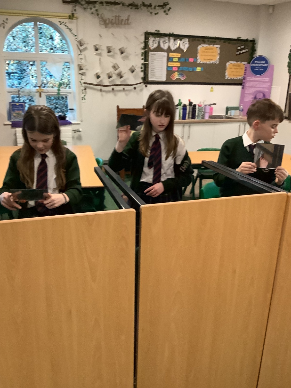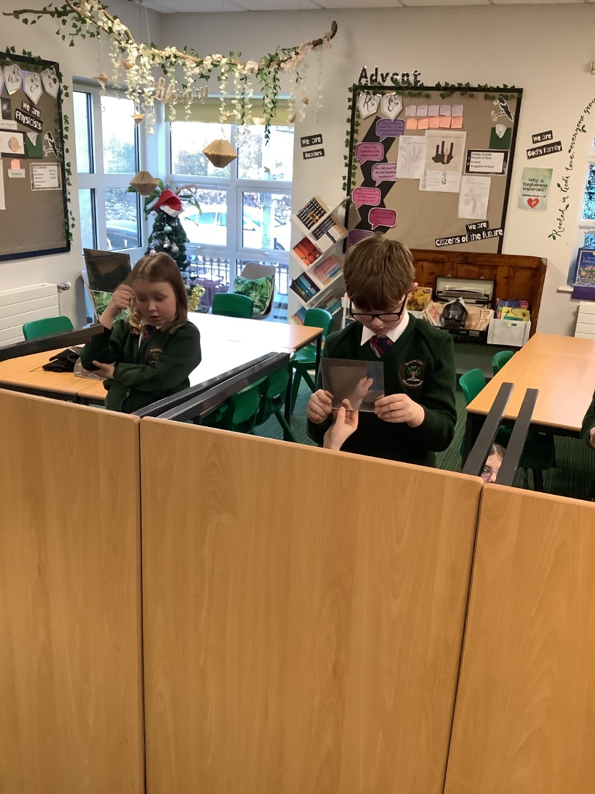 Year 6 learnt all about periscopes as part of their Science topic. They created their own WW1 trench and we used a pair of mirrors to decode secret messages.