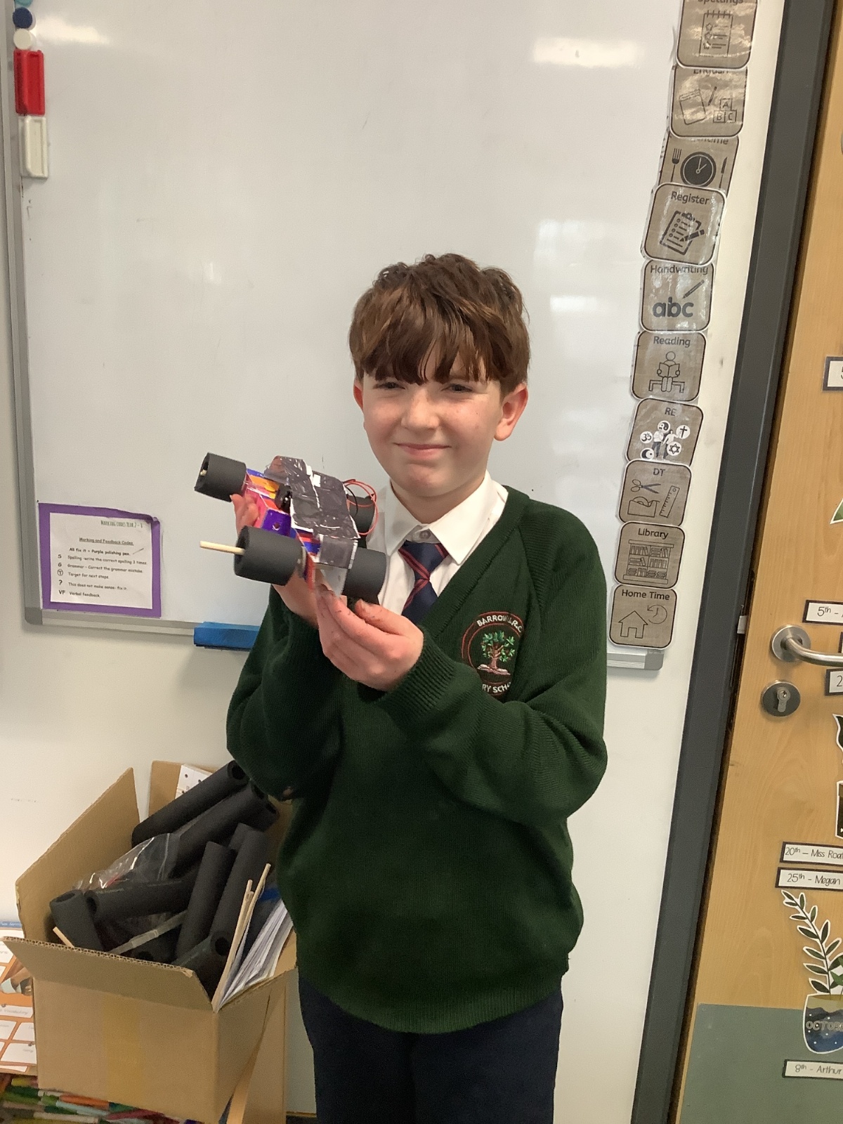 Year 6 completed their DT Tech Cars. They practised racing these in class and loved getting them to work.