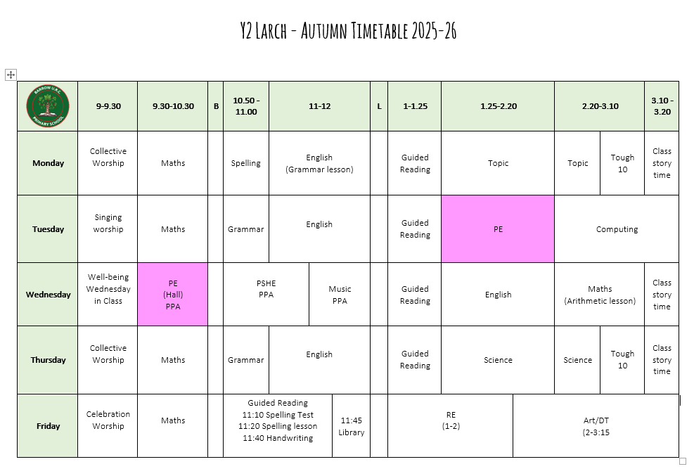Our Timetable