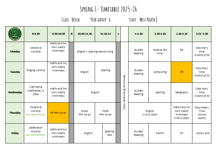 Please come to school dressed in your PE kit on these days with earrings removed.