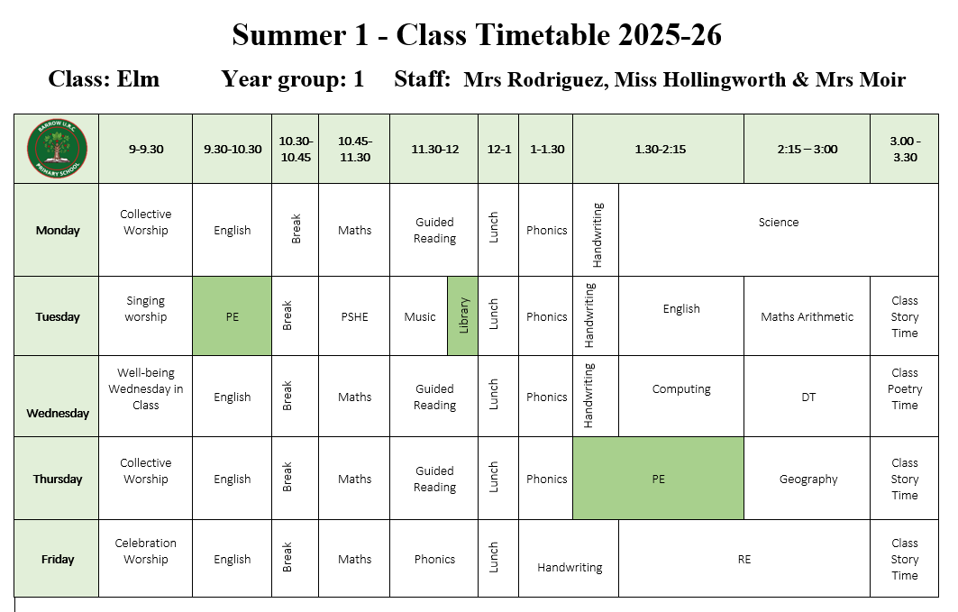 Class Teachers: Mrs Rodriguez, Mrs Berry (HLTA) Tuesday am PPA